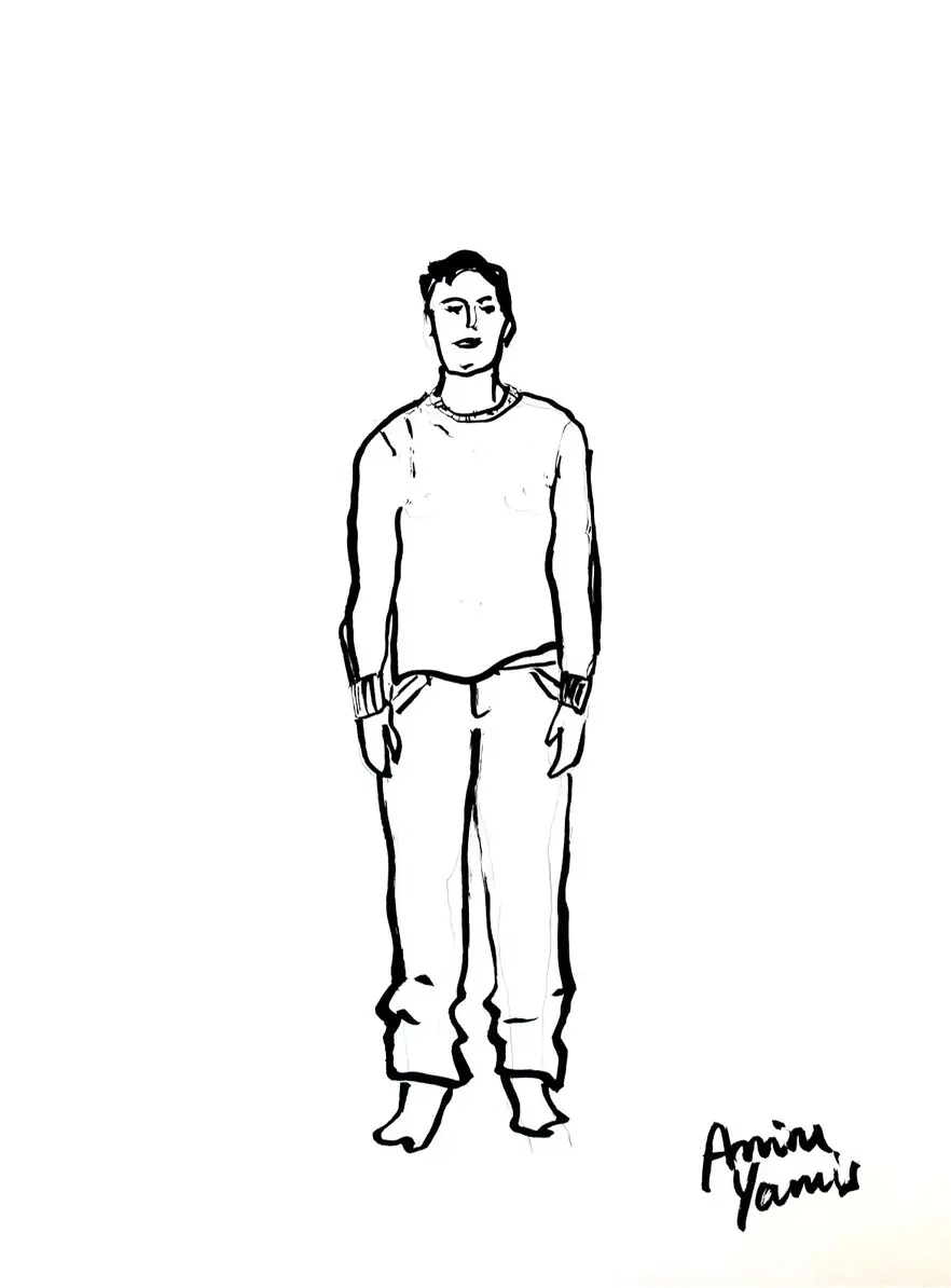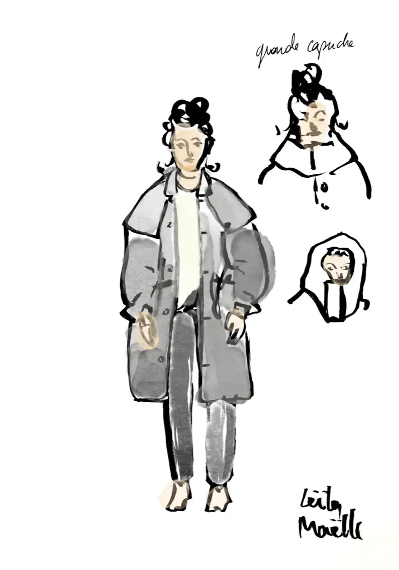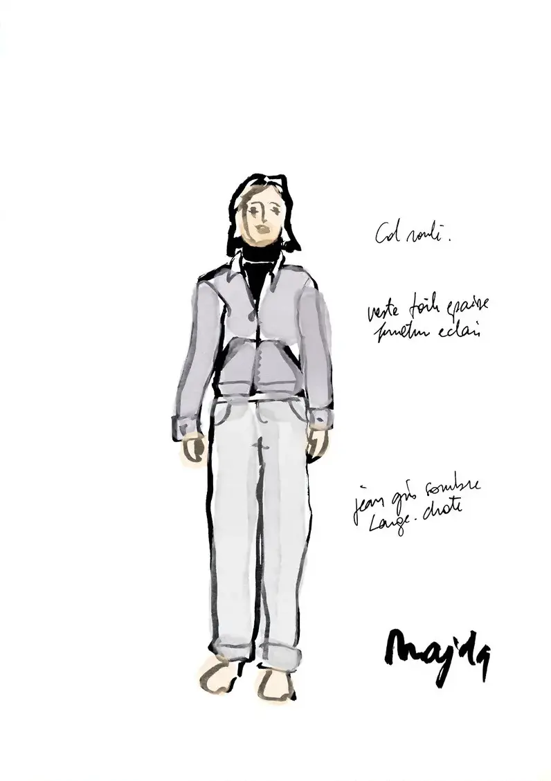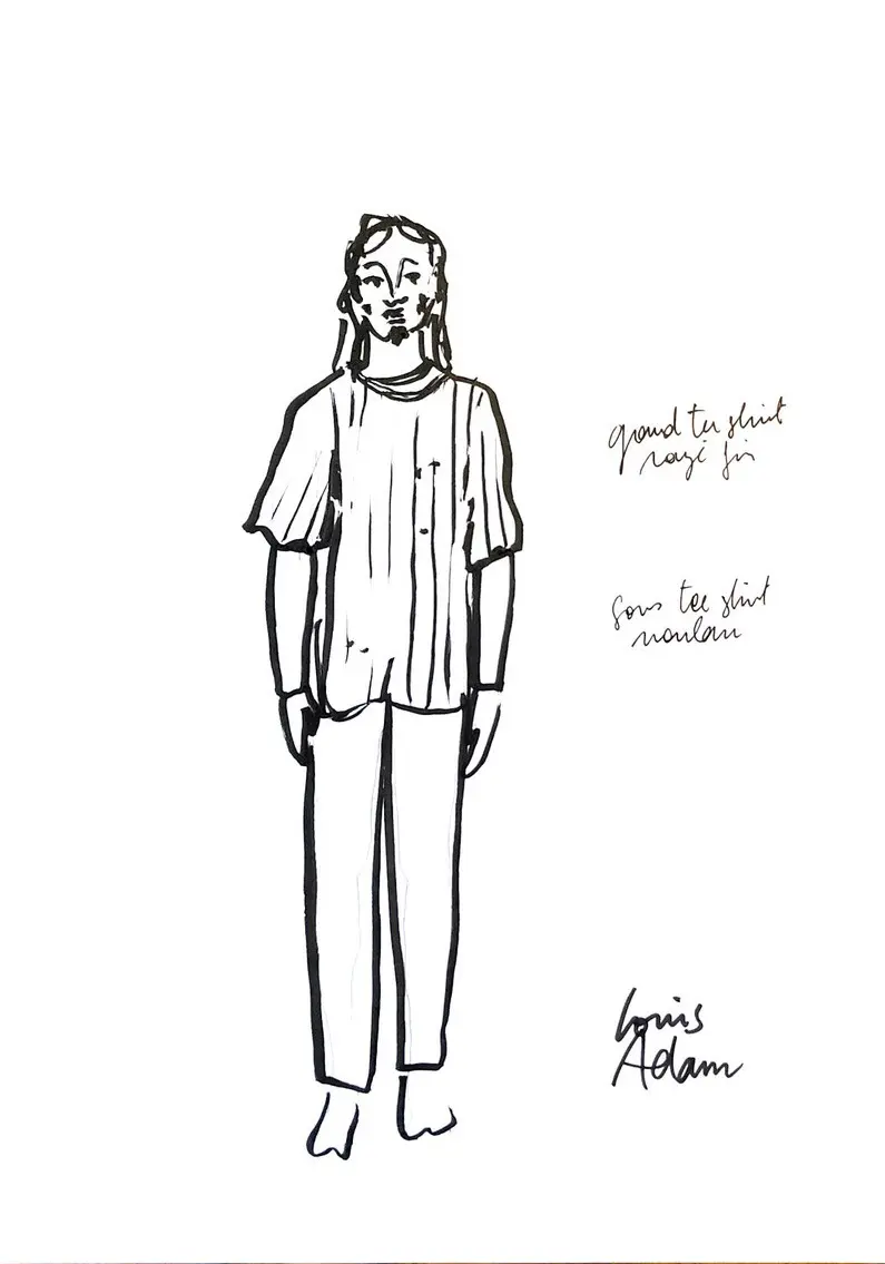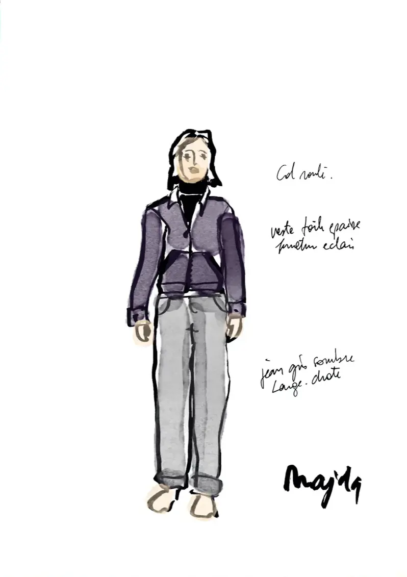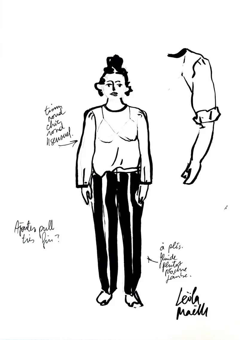 Ces rapports à la narration se sont traduits par une recherche de silhouettes costumées “concrètes”, faites d’habit contemporain du quotidien. Ces costumes cherchent à raconter les caractères des quatre personnages, sans verser dans une version documentaire de “la flic” ou encore “l’ouvrier”.